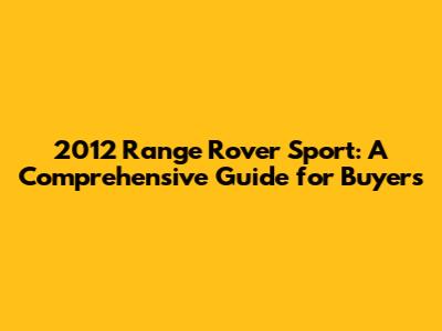 2012 Range Rover Sport: Your Ultimate Guide To Buying