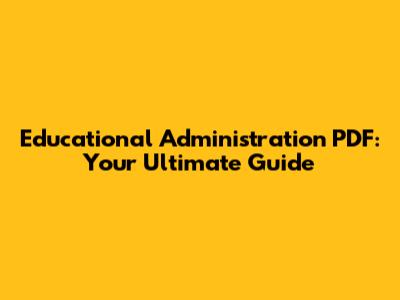 Educational Administration PDF: Your Ultimate Guide