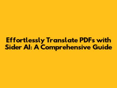 Effortlessly Translate PDFs With Sider AI: A Comprehensive Guide