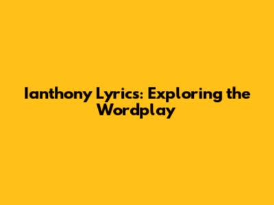 Ianthony Lyrics: Exploring The Wordplay