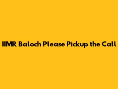 IIMR Baloch: Urgent Call - Please Answer!