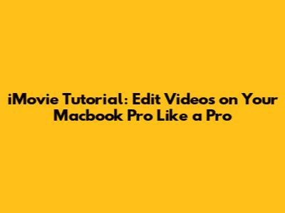 Hey guys! Ready to unleash your inner filmmaker? If you've got a Macbook Pro, you've got a powerful video editing tool right at your fingertips: iMovie. This iMovie tutorial for Macbook Pro is designed to get you up and running, even if you've never touched a video editing software before. We'll cover everything from importing footage to adding those final touches that make your videos shine. So, grab your Macbook Pro, and let's dive in!