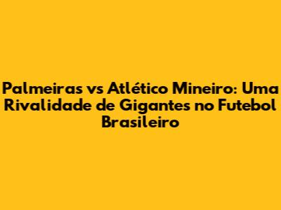 A paixão pelo futebol, a busca pela vitória e a rivalidade entre Palmeiras e Atlético Mineiro se unem para criar momentos inesquecíveis. A cada jogo, uma nova história é escrita, um novo capítulo é adicionado a essa rivalidade que move multidões. A rivalidade entre Palmeiras e Atlético Mineiro é um espetáculo à parte, que atrai a atenção de todo o Brasil e do mundo. E que venham os próximos jogos, com mais emoções, mais gols e mais história para contar!