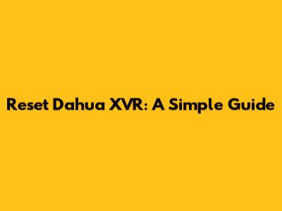 Reset Dahua XVR: A Simple Guide