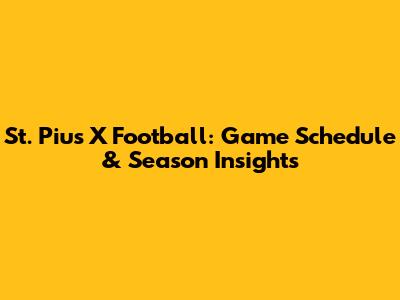 St. Pius X Football: Game Schedule & Season Insights