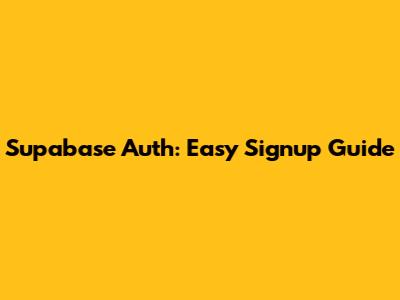 Supabase Auth: Easy Signup Guide