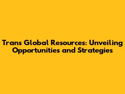Trans Global Resources: Insights & Investment Strategies