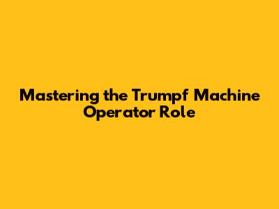 Mastering the Trumpf Machine Operator Role