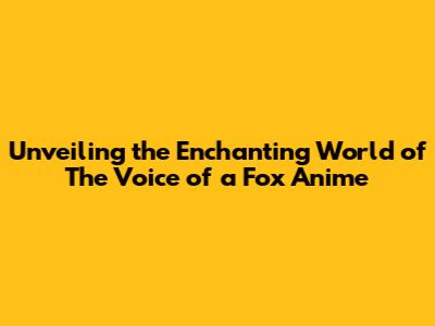 Unveiling The Enchanting World Of 'The Voice Of A Fox' Anime