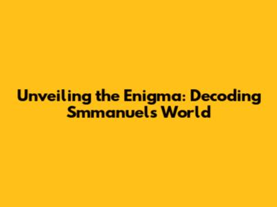 Unveiling The Enigma: Decoding Smmanuel's World